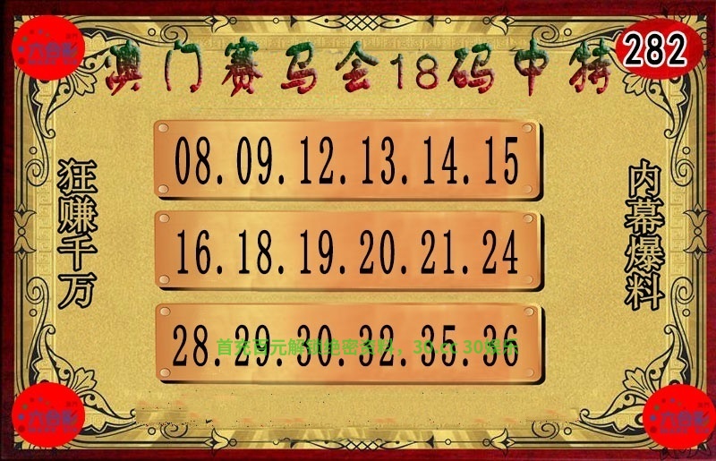 282期:十码 | 21.09.05.41.04.28.11.35.18.42 | 牛41中 |